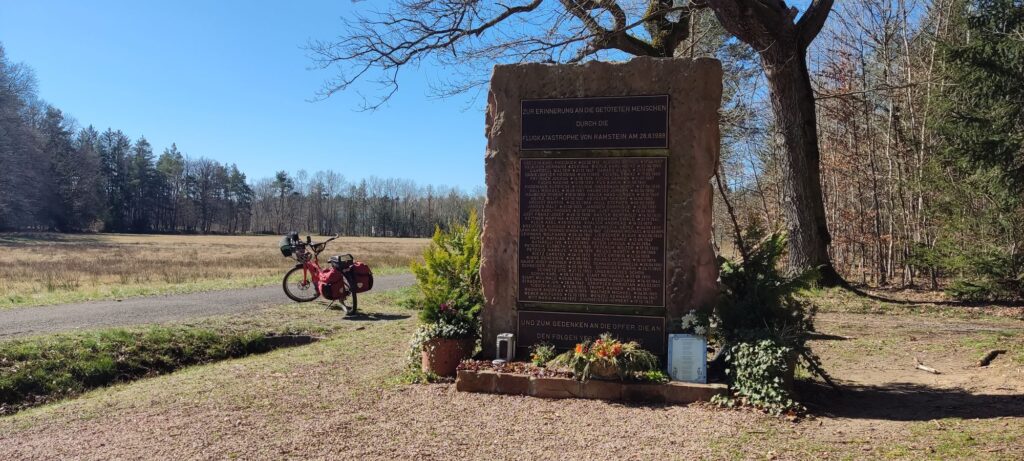 In Ramstein-Miesenbach zum Gedenkstein für die Opfer der Flugkatastophe August 1988 gefahren. Hier macht auch der Nuclearban Marathon jährlich Station. Viele Namen, viele Schicksale, welch ein grausamer Unfall.