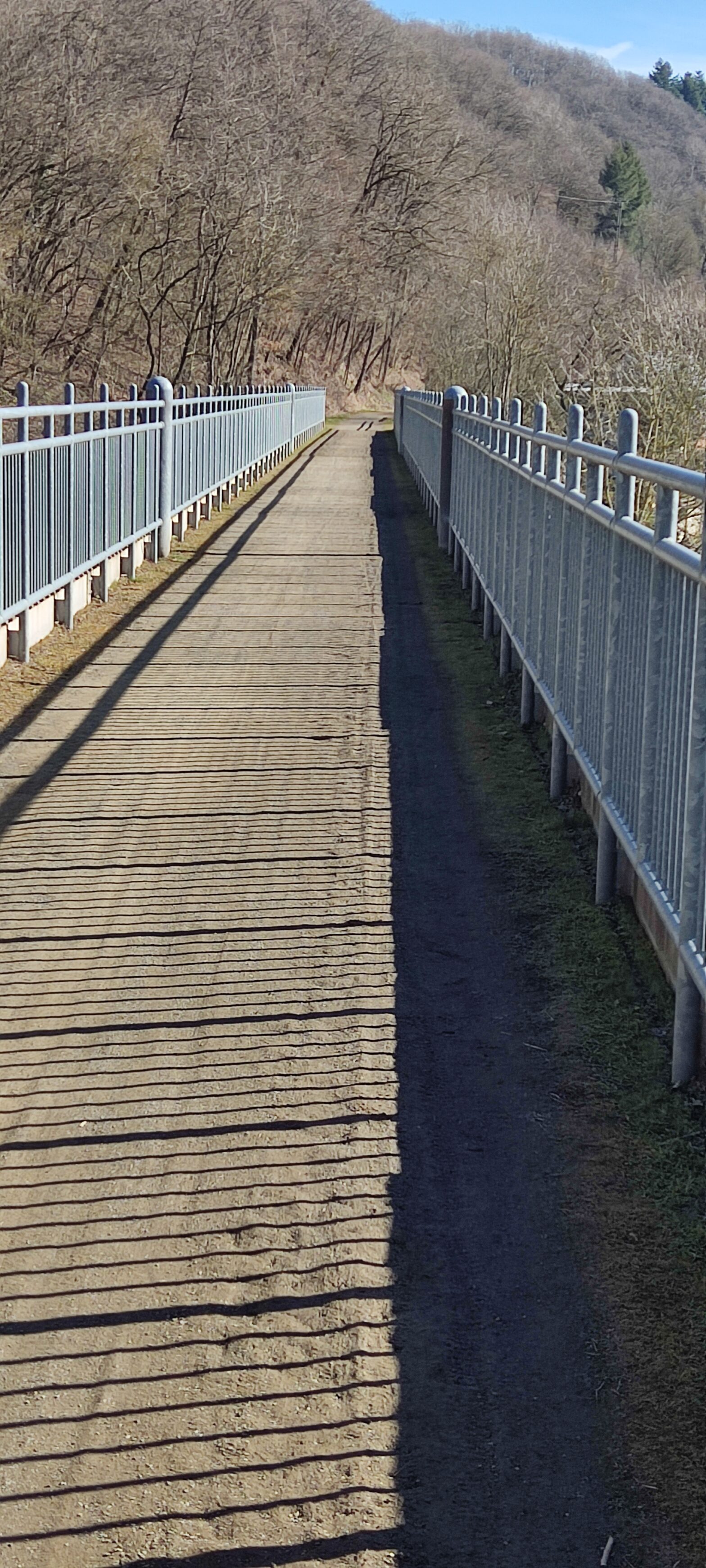 Von der Burg ging es erst einmal Berg ab. Jugendherbergen liegen ja oft oben. Anstrengende Anreise, aber meist tolle Aussicht und gute Abfahrt. Dann wieder zur Bahntrasse Fritz-Wunderlich-Weg nach Kussel. Hier ein kurzer Einkauf.